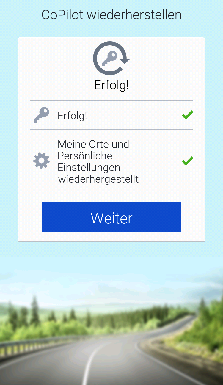 dass Sie dieselbe CoPilot ID verwenden, unter der Sie sich beim Kauf registriert haben. Falls nicht, deinstallieren Sie bitte die CoPilot App und melden sich mit der ursprünglichen CoPilot ID an.